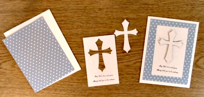 Adhere the cross in the negative area of your sentiment die cut paper as shown above.