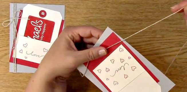 Tie a bow on your I Just Love You Gift Card Holder Project and cut off the excess twine. Adjust your twine on your creation as you prefer.
