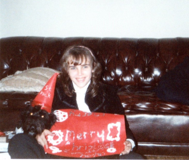 I enjoyed creating so much I even made my dog Mickey a Christmas costume because I was home sick with bronchitis and bored. I believe I was around 11 years old in this picture shown.