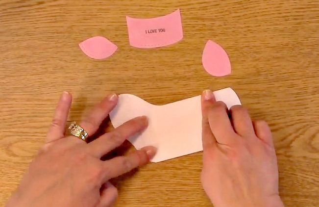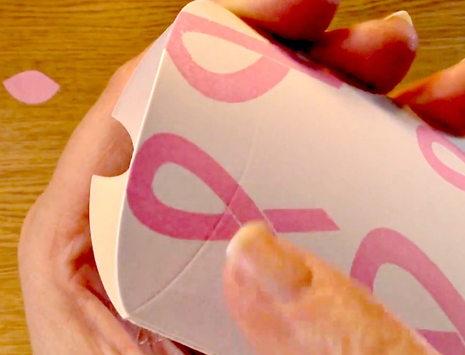 Take out your pillow box die cut. Fold in the tab at the bottom of the die. This tab will hold in your gift card once it is placed inside.