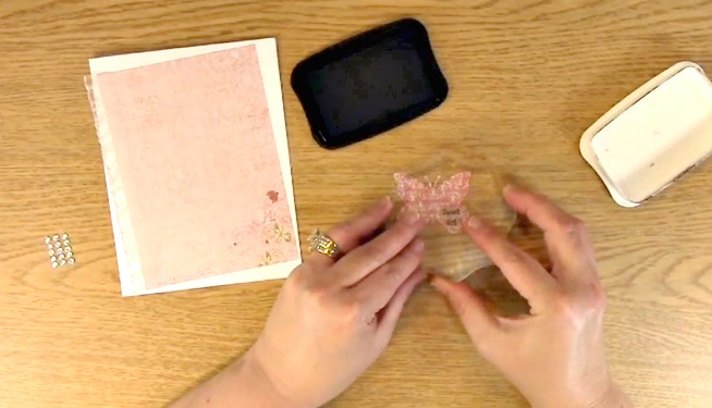 Here is the butterfly and the base of the card. I purposely put it a little different because I wanted to show you how just a little difference could change the look of the card.