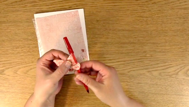 I use a pen with a cap to carefully roll the butterfly wings to give it a little more a 3-D effect on the card.